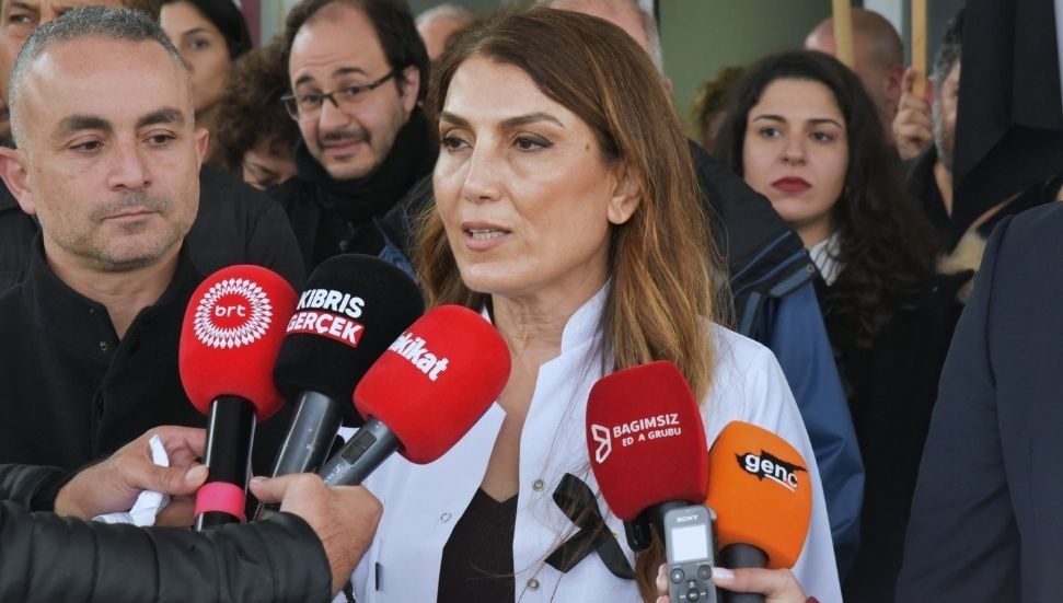 Hekimler Sendikası, Lefkoşa Burhan Nalbantoğlu Hastanesi önünde bir eylem gerçekleştirdi. Sendika kamuda hekimlerin “kadrosuz, geçici statülerde ve mecburi hizmet” koşullarında çalıştırıldığını belirterek, sağlık sisteminin sürdürülebilirliği için ayrı ve bağımsız bir Kamu Hekimleri Yasası talep etti.