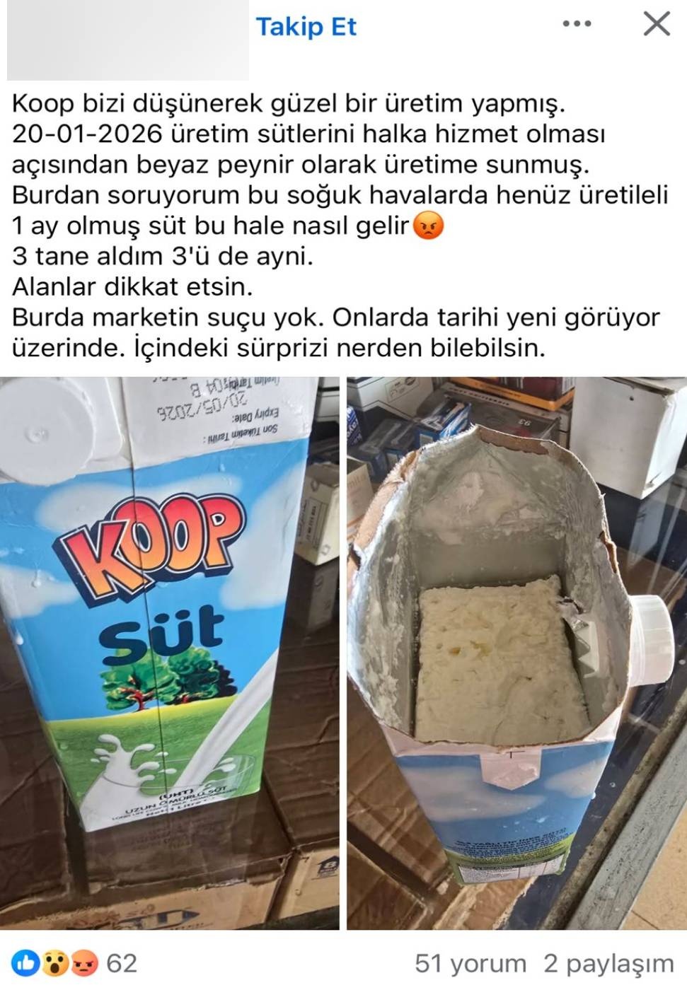 Koop-Süt’ün 20 Ocak 2026 tarihinde halka sunulan sütleri sosyal medyada tartışma konusu oldu. Bir vatandaş, aldığı üç sütün tamamının bozuk olduğunu belirterek yetkililere tepki gösterdi.