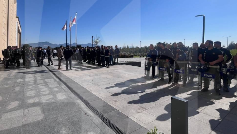 Tabut ve hücum marşıyla beraber Meclis'e yürüyüş başladı: Meclis'in ilk giriş kapısında duran polislerin, eylemcileri durdurmak için çaba göstermediği ve eylemcilerle sarılarak alana doğru yürüdüğü görüntülendi!#haber #kktc #kıbrıs pic.twitter.com/TtZZE4JlgD