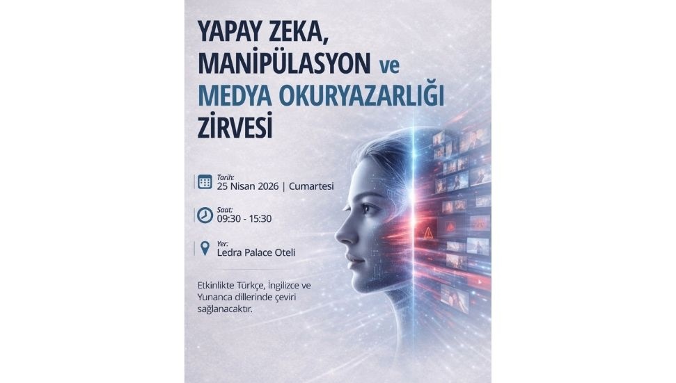 Kıbrıs Türk Gazeteciler Birliği ile İnsan Hakları Platformu’nun organizatörlüğünde; Kıbrıs Gazeteciler Sendikası, Fact-Check Cyprus (Cyprus University of Technology) ve Barış İçin Araştırma ve İletişim Merkezi’nin (Doğu Akdeniz Üniversitesi) katkılarıyla "Yapay Zeka, Manipülasyon ve Medya Okuryazarlığı Zirvesi" düzenliyor. Söz konusu zirve, 25 Nisan Cumartesi günü ara bölgedeki Ledra Palace Otel’de gerçekleştirilecek.
