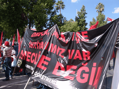 Eylem yerinde sendika temsilcileri sırayla konuşma yaptı. Eylemciler alkışlarla düdük çalıp, sloganlar attı.