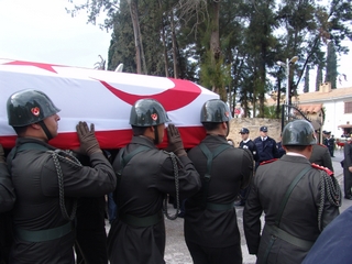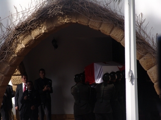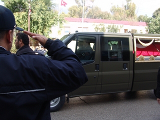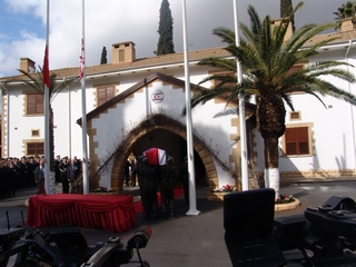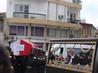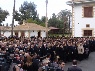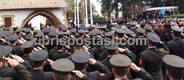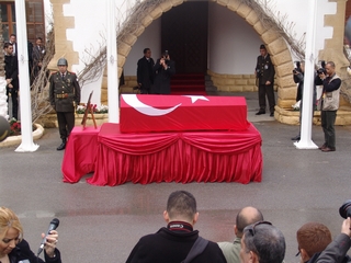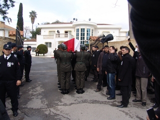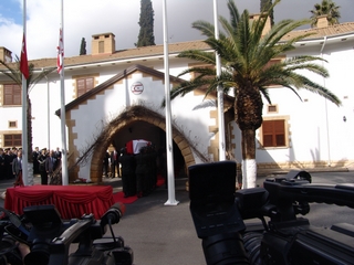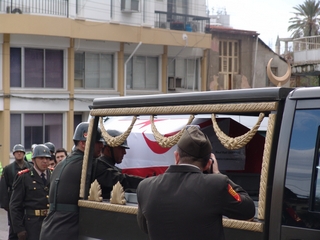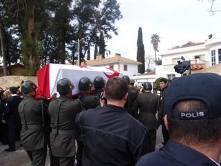 Kurucu Cumhurbaşkanı Denktaş'ın naaşı yavaş adımlarla Girne Kapısı'ndan Cumhurbaşkanlığı'na doğru götürüldü. Rauf Denktaş'ın naaşı şu anda Cumhurbaşkanlığı Sarayı bahçesinde.