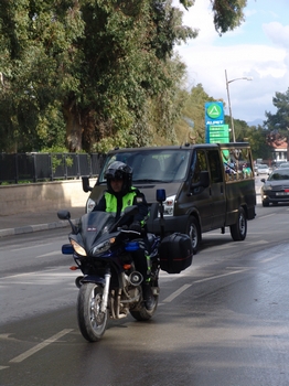 Yağmurun da başlamasıyla protokole şemsiyeler dağıtılmaya başlandı.