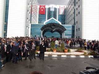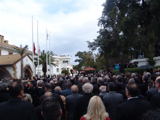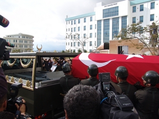 Yakın Doğu Üniversitesi (YDÜ) Hastanesi'nden başlayan devlet töreninde bütün devlet yetkilileri yerlerini aldılar.