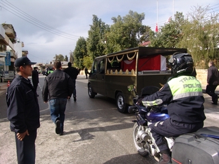 Cuma akşamı saat 22:00'da hayatını kaybetmesiyle tüm ülkeyi yasa boğan Kurucu Cumhurbaşkanı Rauf Denktaş'ın naaşı tören mangasının omuzlarında cenaze arabasına konuldu.