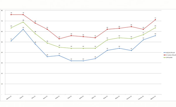 Geçen yılın Şubat ayı dikkate alındığında 2012 yılının Şubat ayında özellikle küçük otellerin doluluk oranlarında olumlu anlamda bir değişim olduğunu görmekteyiz. Şubat 2011 de %10'larda olan doluluk oranları, yine düşük olmakla birlikte Şubat 2012 de %25'lere çıkmıştır.