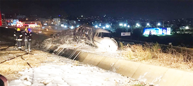 Daha sonra inişe geçen uçak gövdesi ile inmeye çalışırken alev aldı. Uçağın alev alması üzerine, bölgeye havalimanı ve çevre ilçelerden itfaiye ekipleri sevk edildi.