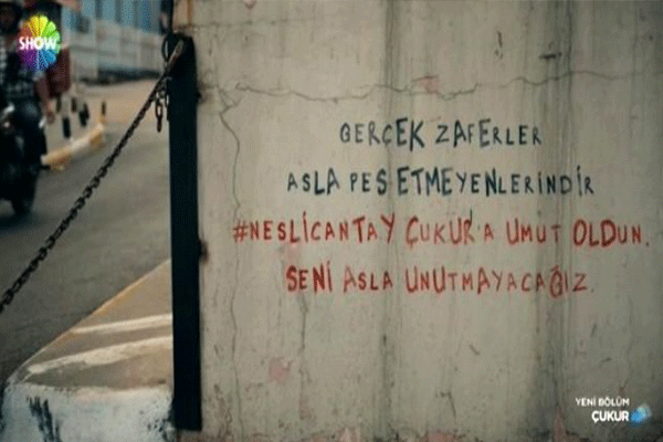 Ölümüyle tüm Türkiye'yi yasa boğan Tay, Çukur dizisinde de unutulmadı. Çukur'un akşam yayınlanan bölümünde boş bir duvara "Gerçek zaferler asla pes etmeyenlerindir. Neslican Tay Çukur'a umut oldun, seni asla unutmayacağız" yazıldı.