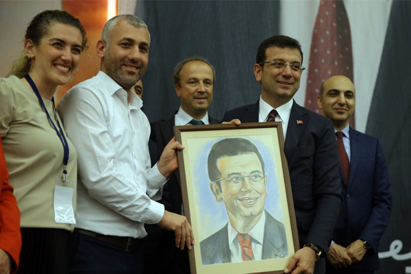 Fotoğraf montajlanarak hazırlanmış. Ekrem İmamoğlu'na hediye edilen tablonun orijinalinde kendisinin bir portresi bulunuyor.