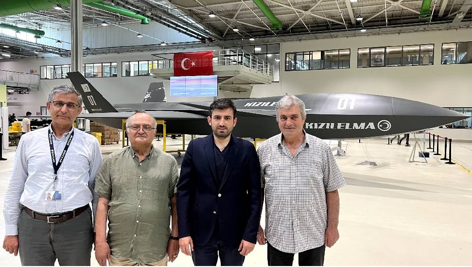 Ergin Saygun Paşamız, Ömer Amcam ve Başkan Köseoğlu...#KIZILELMA UCAV first photo of its painted finish...