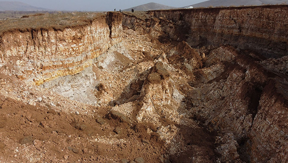 Derinliği 15, genişliği 50 ve uzunluğu 150 metreyi bulan yarık havadan görüntülendi.