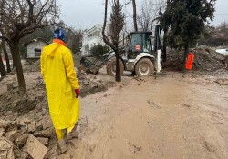 İlçe merkezinde biriken su, belediye ekiplerinin çalışmasıyla derelere verildi. Vahap Küçük Meydanındaki çadırlarda kalan depremzededeler de selden etkilendi.