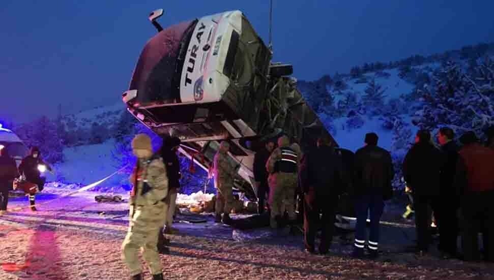 Kar, tipi ve buzlanmanın etkili olduğu Erzincan-Sivas kara yolunun Kızıldağ mevkisinde Fatih Ö. idaresindeki Turay firmasına ait otobüs devrildi.