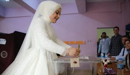 Beyzanur Karabacak, Liman Mahallesi'ndeki Ticaret ve Sanayi Odası Ortaokulu'na gelinliğiyle geldi. Karabacak, 1049 numaralı sandıkta oy kullandıktan sonra, gazetecilere yaptığı açıklamada, gelinlikle oy kullanmaya geldiği için çok heyecanlı olduğunu söyledi.