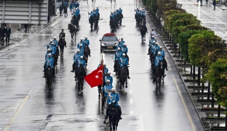 Atlı Tören Birliği Söğütözü Caddesi'nde karşıladığı Türkiye Cumhurbaşkanı Erdoğan'a, Cumhurbaşkanlığı Külliyesi'nin A Kapısı'na kadar eşlik etti.