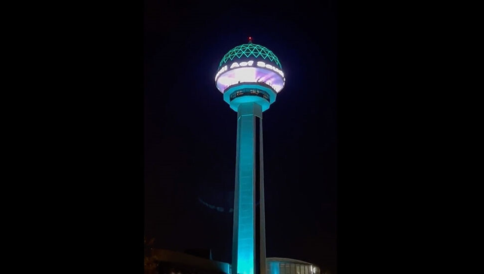 Başkentin, önemli günlerde renk ve ışık gösterilerine sahne olan simgesi Atakule, 23 Eylül'de yeşil renkle ışıklandırıldı.