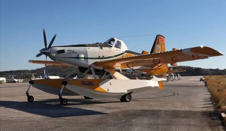 Türkiye'nin yangınla mücadele eden Yunanistan'a destek amacıyla gönderdiği iki yangın söndürme uçağı ve bir helikopter, Atina Elefterios Venizelos Uluslararası Havalimanı'na indi.