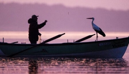 Bahar müjdelendi: Yaren leylek, 14. Yılında da balıkçı Adem Yılmaz'ın kayığına kondu