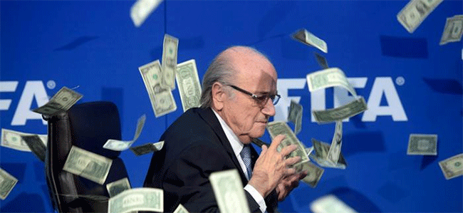 FIFA Başkanı Blatter'a rüşvet protestosu: Başına bir tomar para atıldı
