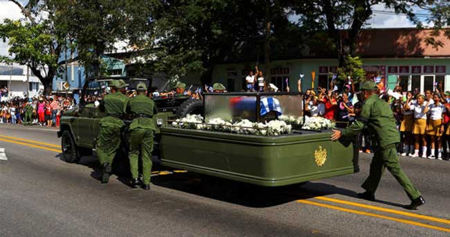 Kübalılar, 25 Kasım'da 90 yaşında hayata veda eden devrimci liderleri Fidel Castro'yu son yolculuğuna uğurluyor. Santiago şehrinde düzenlenen veda törenine on binlerce kişi katıldı. Küba Devlet Başkanı Raul Castro, Santiago'daki etkinlikte, sosyalist prensipleri devam ettirme sözü verirken, kardeşi Fidel Castro'nun bir vasiyetini açıkladı.