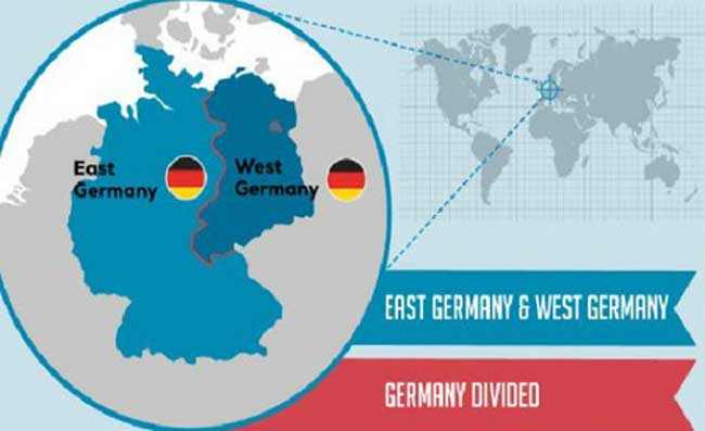 En ilginç sınırlardan birisi de 2. Dünya Savaşı sonrası ayrılan Doğu ve Batı Almanya'ya ait. O dönemde başkent Berlin, Doğu Almanya tarafında yer alıyordu fakat şehri ikiye bölen Berlin Duvarı, Batı Berlin'i Batı Almanya'da çevrelenmiş bir bölge durumuna getiriyordu.