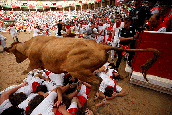 Festivalde en dikkat çekenlerden biri de tepkilere rağmen devam eden boğa koşusu oldu. 6 kızgın boğanın koşturması ile yüzlerce kişi dar sokaklarda kaçıştı. Kimileri kızgın boğaların boynuzlarından kaçsa da herkes o kadar şanslı değildi. Açıklamaya göre ilk 2 günde 9 kişi yaralandı.