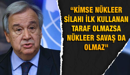 Nükleer silahları olan ülkelerden, bu silahları ilk kullanan taraf olmamayı ve nükleer silahları olmayan ülkeleri tehdit etmemeyi taahhüt etmelerini isteyen Guterres, "Bence kimse nükleer savaş fikrini kabul edemez. Bu, gezegenin felaketi olacaktır. Kimse nükleer silahı ilk kullanan taraf olmazsa nükleer savaş da olmaz." dedi.