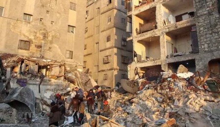Türkiye'deki depremler Suriye'nin İdlib, Halep, Hama, Lazkiye, Tartus ve Rakka illerinde de şiddetli hissedildi, büyük yıkımlar meydana geldi.