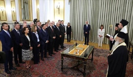 Yunanistan'da kabine üyeleri, Cumhurbaşkanı Katerina Sakelaropulu ve geçici hükümetin Başbakanı Yannis Sarmas huzurunda yemin ederek göreve başladı.