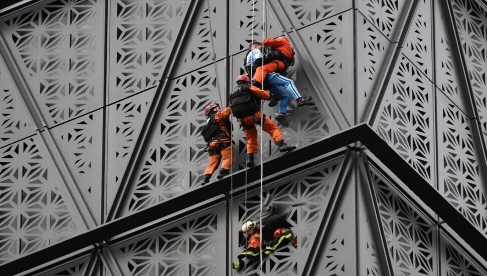 İtfaiye ekipleri, Arjantin forması giyerek binanın 25. katına kadar tırmanan Banot'yu yakalayarak aşağı indirdi.