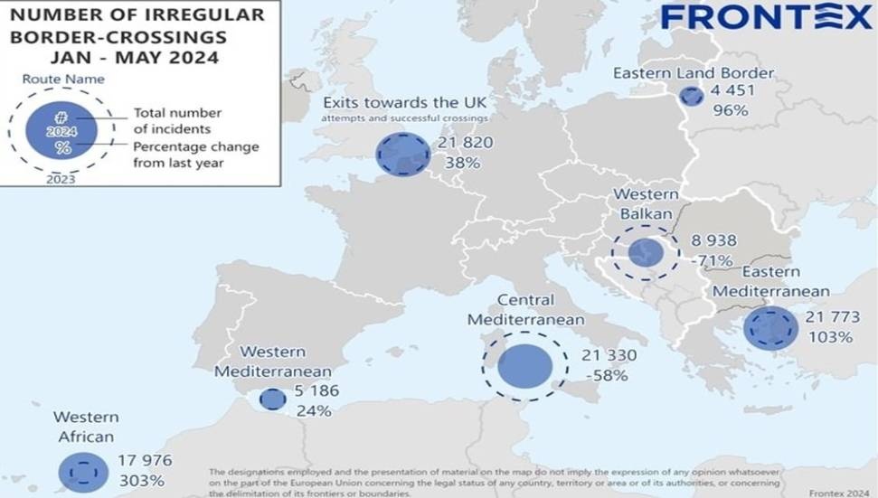 Avrupa Birliği’nin sınır güvenliğinden sorumlu Frontex, AB sınırlarında yapılan mültecilerle ilgili rapor yayımladı. Rapora göre Batı Afrika’dan ve Doğu Akdeniz’den geçişlerin önemli ölçüde arttığına dikkat çekildi.