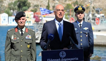 Yunanistan Savunma Bakanı Dendias, Türkiye kıyılarına 2 kilometre mesafeden açıklamalarda bulundu. Dendias, “Doğu Akdeniz’deki egemenliğimizi güçlendireceğiz. Özgürlük verilmiş bir şey değil, ne pahasına olursa olsun onu koruyacağız” diye konuştu.