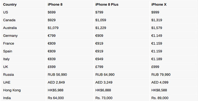 Elbette bu telefonun Amerika'daki satış fiyatı. Peki diğer bölgelerde durum ne alemde? Dilerseniz iPhone X'in ülkeden ülkeye değişen satış fiyatına aşağıdan göz atabilirsiniz.
