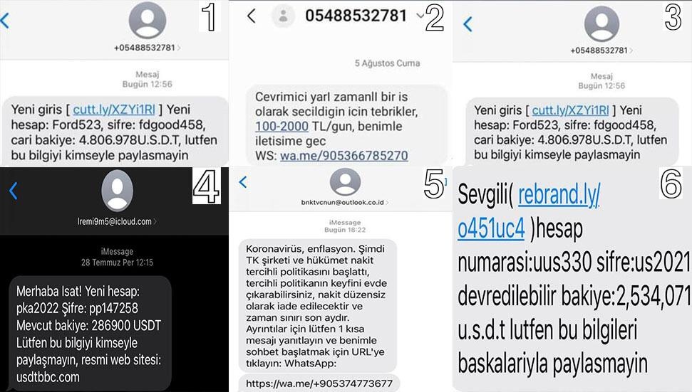 Arda Topal, telefona gönderilen mesajların ‘giriş kodu ve şifrenizi kimseyle paylaşmayın’ gibi merak uyandıran mesajların gönderildiğini söyledi. Topal, bu tür yabancı kişilerden gönderilen mesajlara asla itibar edilmemesi gerektiğini kaydetti.