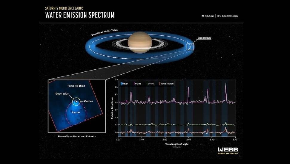 Webb, Satürn'ün uydusundan uzaya fışkıran 6 bin 600 kilometrelik su buharı sütununu görüntüledi