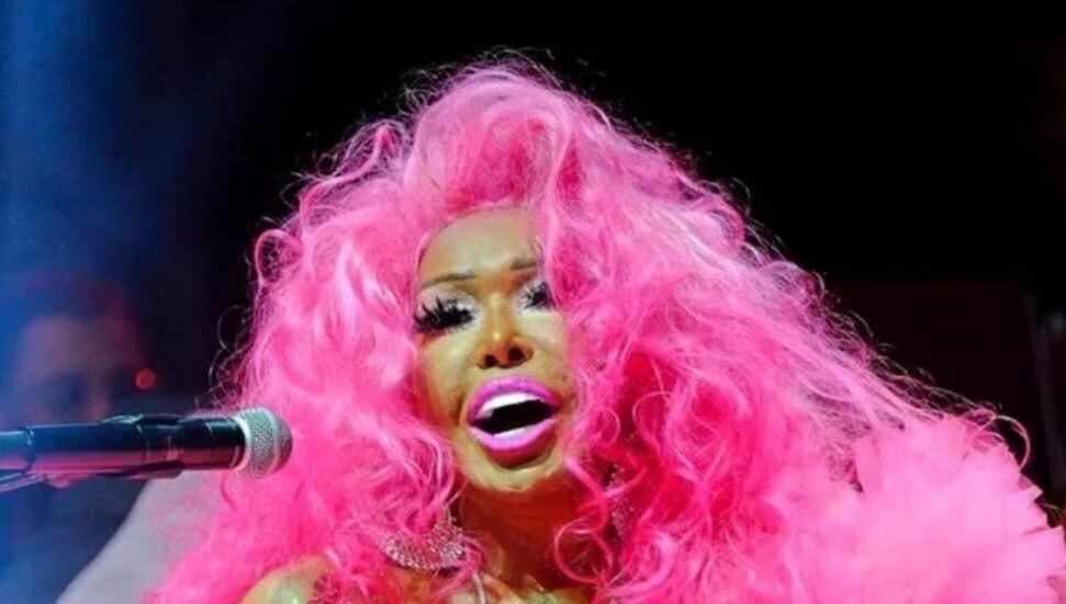 Sanatçı, pembe peruğu, pembe tonlarındaki makyajı ve pembe elbisesiyle sahnede boy gösterdi.
