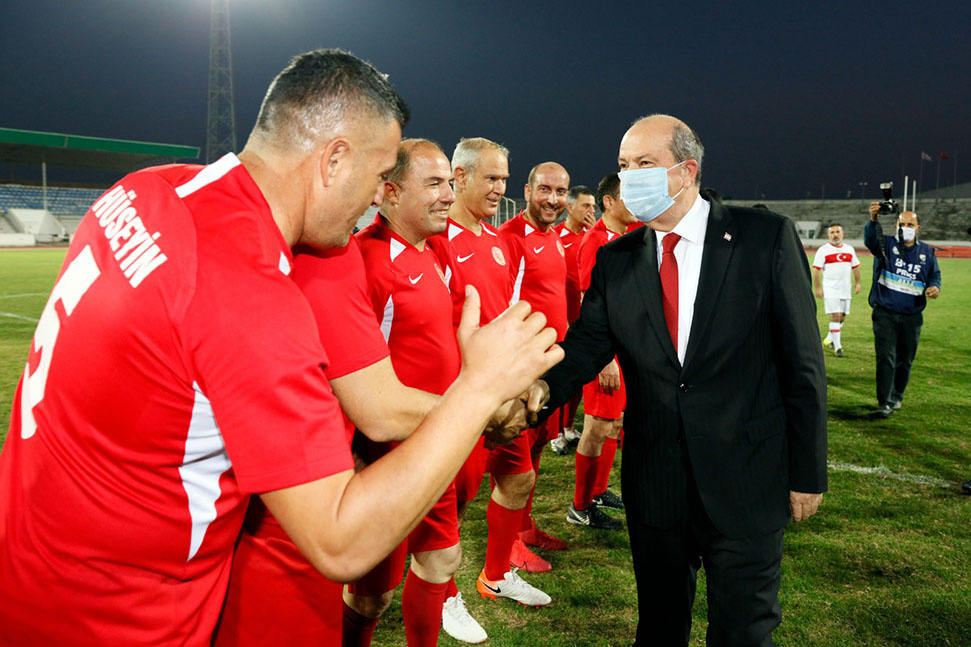 Türkiye Cumhuriyeti’nin, KKTC’nin her zaman yanında olduğunu bütün dünyanın bildiğini belirten Cumhurbaşkanı Tatar; “Böylesine güzel bir dostluk karşılaşmasıyla KKTC gençliğine uygulanan ambargoların ne kadar anlamsız, çağ dışı ve insanlığa aykırı olduğunun cevabını hep birlikte bu akşam burada veriyoruz. KKTC’nin 38. Kuruluş Yıl Dönümü kutlu olsun. KKTC halkı bütün güzellikleri hak etmektedir. Bu maçta dostluk kazansın. Hepinize sevgi ve saygılarımı sunuyorum” dedi.