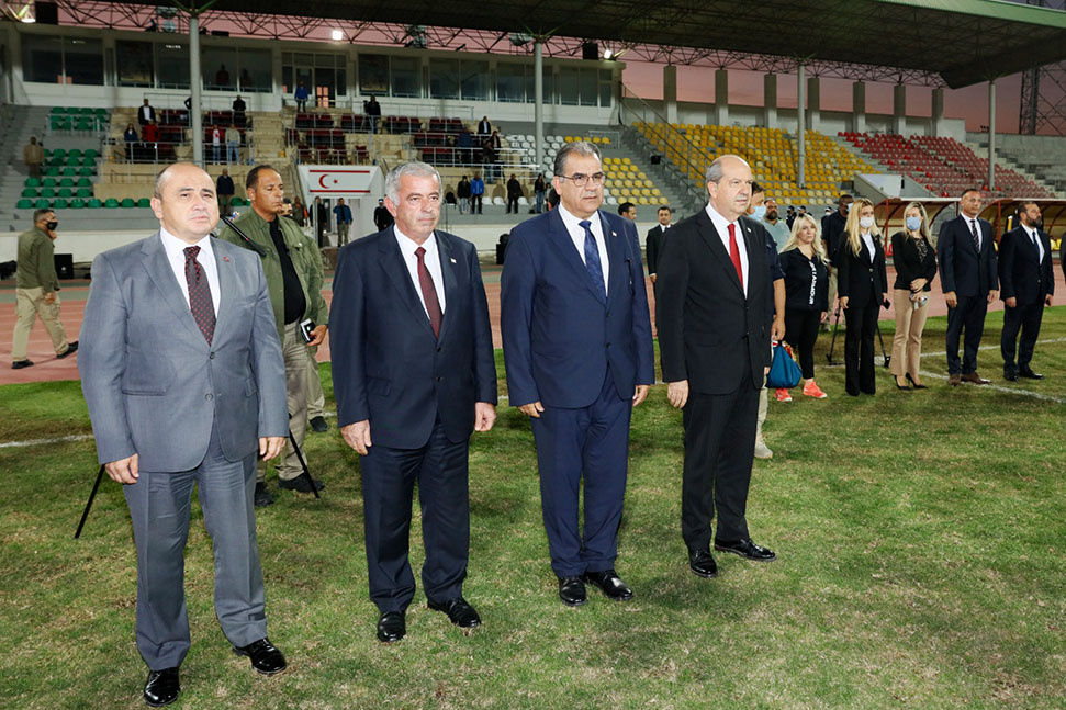 Cumhurbaşkanı Ersin Tatar karşılaşma öncesi yaptığı konuşmada, böylesine güzel bir futbol karşılaşmasını izlemek için orada olmaktan dolayı duyduğu mutluluğu dile getirerek dostluğun ve kardeşliğin kazanmasını temenni etti.