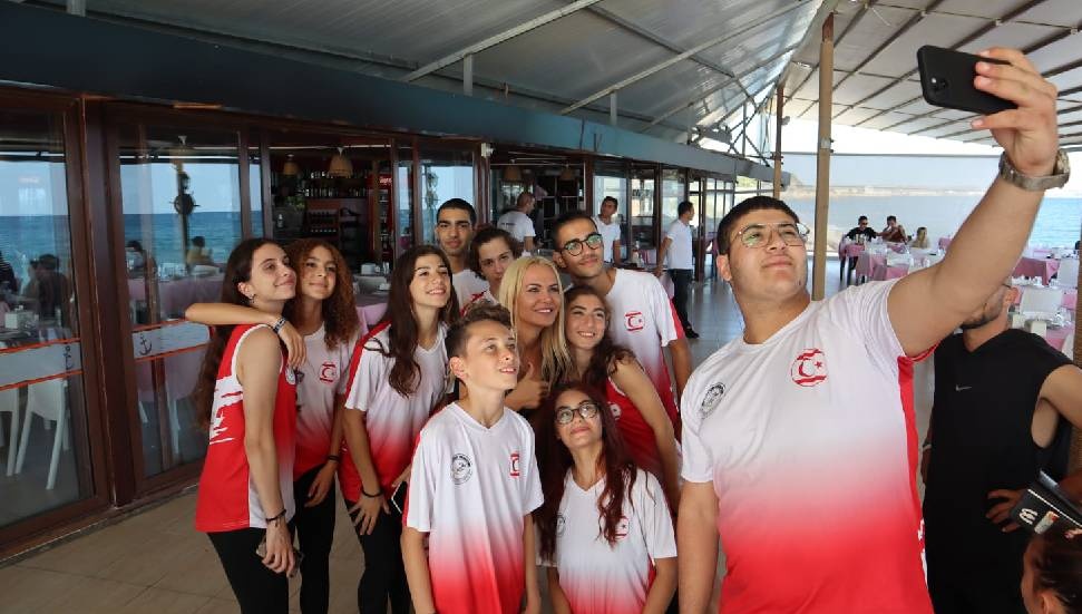 İskele bölgesinde büyük bir ilgiyle karşılaşan sporcuları, İskele Belediye Başkanı Hasan Sadıkoğlu, Kıbrıs Türk Çiftçiler Birliği Başkanı Mehmet Nizam, Kuzey Kıbrıs Türk Cumhuriyeti Millî Olimpiyat Komitesi Başkanı Dursun Koç ziyaret etti.