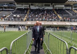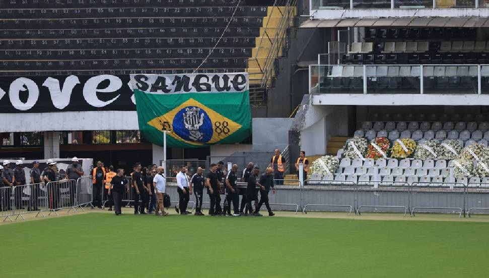 Vila Belmiro Stadyumu'na üstü açık tabutla getirilen Pele'nin naaşı, burada yarın sabaha kadar taraftarların ziyaretine açık kalacak.