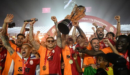 Galatasaray, şampiyonluk kupasını kaldırdı