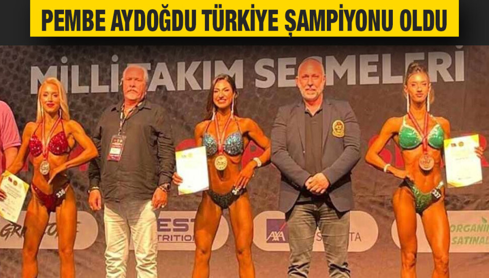 Türkiye Vücut Geliştirme - Fitnes ve Bilek Güreşi Federasyonu'nun İzmir’de düzenlediği ‘Türkiye Vücut Geliştirme ve Fitnes Şampiyonası’na katılan KKTC Halter ve Vücut Geliştirme Federasyonu Milli Takım sporcusu Pembe Aydoğdu, Gençler Kadın Bikini Fitnes -166 cm kategorisinde Türkiye Şampiyonu oldu.