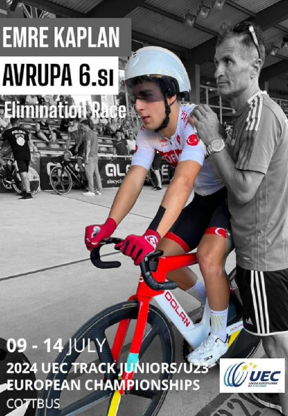 9-14 Temmuz 2024 tarihlerinde Almanya’nın Cottbus şehrinde düzenlenen 23 Yaş altı ve Gençler Avrupa Pist Bisikleti Şampiyonasında “Elimination” yarışında Türkiye Milli Takımı Kıbrıslı Türk Bisiklet Sporcusu Emre Kaplan ile Genç erkekler kategorisinde 15 ülke arasında 6. sırada yer aldı.
