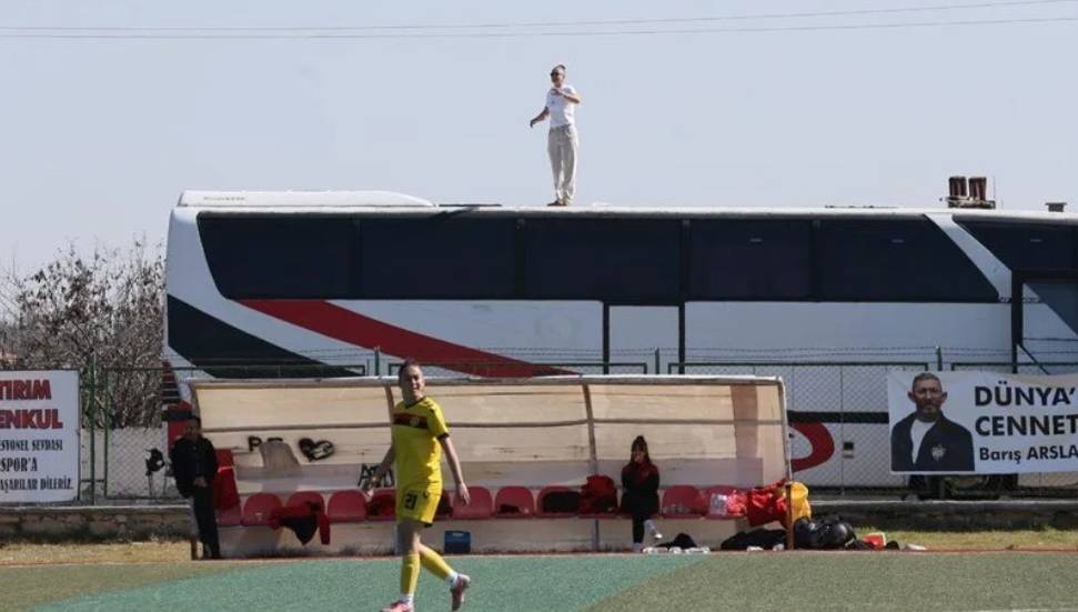 Türk futbolunda ilginç olay: Cezalı antrenör, takımını otobüsün üzerinden yönetti