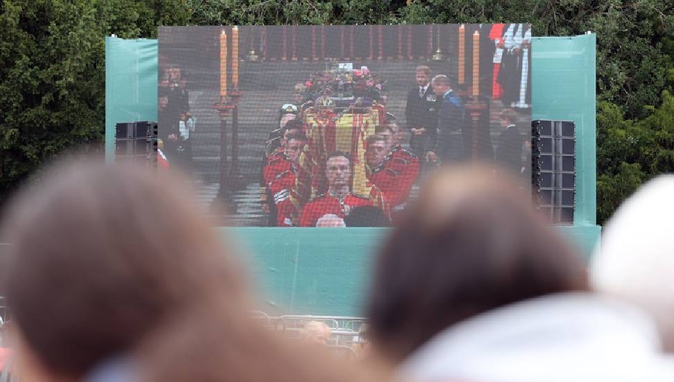 96 yaşından hayatını kaybeden Kraliçe Elizabeth’in tabutu, başkent Londra’daki Westminster Abbey Kilisesi’nde yapılan cenaze merasiminin ardından TSİ 17.00’de Windsor Kalesi önündeki Uzun Yürüyüş alanına getirildi.