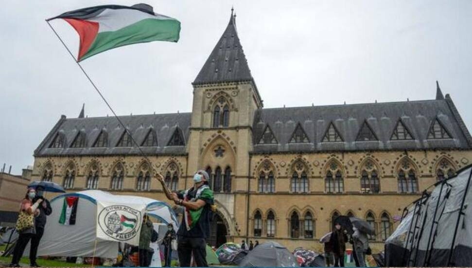 Öğrenciler 6 Mayıs'ta Oxford Doğa Tarihi Müzesi ve Cambridge'de King's College'da "kurtarılmış bölge" olarak da anılan kamplar kurarak Gazze'deki İsrail operasyonunu protesto etmeye başlamıştı.