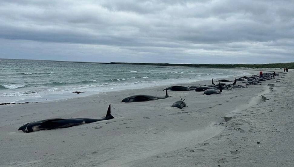 İngiliz Dalgıçlar Deniz Yaşamı Kurtarma Ekibi (BDMLR), dün sabah saatlerinde Orkney Adası'nda deniz kıyısında görülen 77 yüzgeçli pilot balinasının toplu olarak kıyıya vurduğuna dair ihbar aldığını ifade etti.