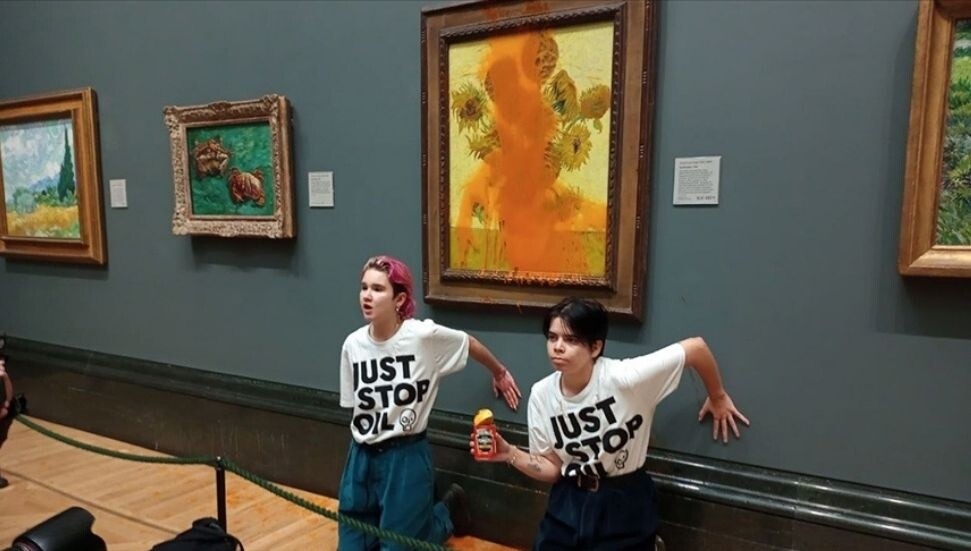 İngiltere'de 2022'de Hollandalı ressam Vincent Van Gogh'un "Ayçiçekleri" tablosuna çorba atan çevre eylemcileri Pheobe Plummer 2 yıl 3 ay, Anna Holland ise 20 ay hapis cezasına çarptırıldı.
