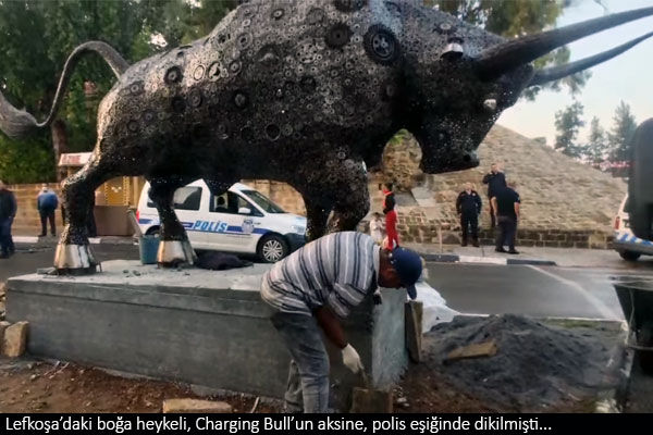 ‘Lefkoşa Suriçi Şehir Müzesi’ önüne, bölgenin dokusu düşünülmeden ve izinsiz bir şekilde, havanın karardığı saatlerde dikilen boğa heykeli, yine havanın karardığı saatlerde LTB’nin yoğun ısrarı sonucu kaldırıldı. Heykelin hikayesinde, Wall Street’teki efsanevi Charging Bull ile kesişen pek çok nokta mevcut ancak sonları oldukça farklı…