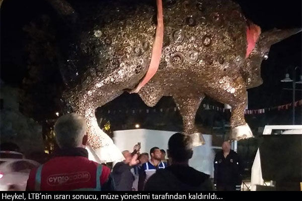 Bölgenin dokusu düşünülmeden ve izinsiz bir şekilde, havanın karardığı saatlerde dikilen boğa heykeli, yine havanın karardığı saatlerde LTB’nin yoğun ısrarı sonucu “Charging Bull’dan farklı olarak” müze yönetimi tarafınca kaldırıldı.
